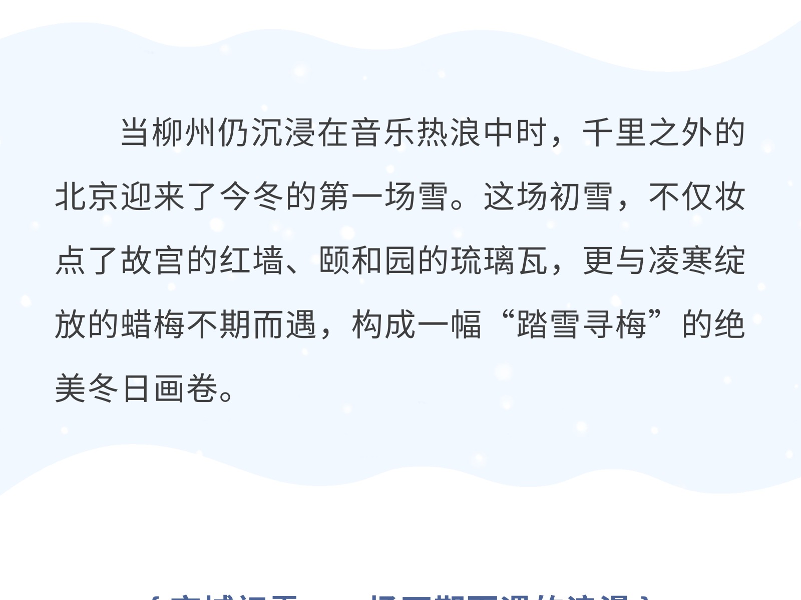 北京初雪已定檔!飛赴冬日限定浪漫,共賞踏雪尋梅的詩意 發(fā)布時間:2025年12月14日 10時來源:本站原創(chuàng)瀏覽:25 人次