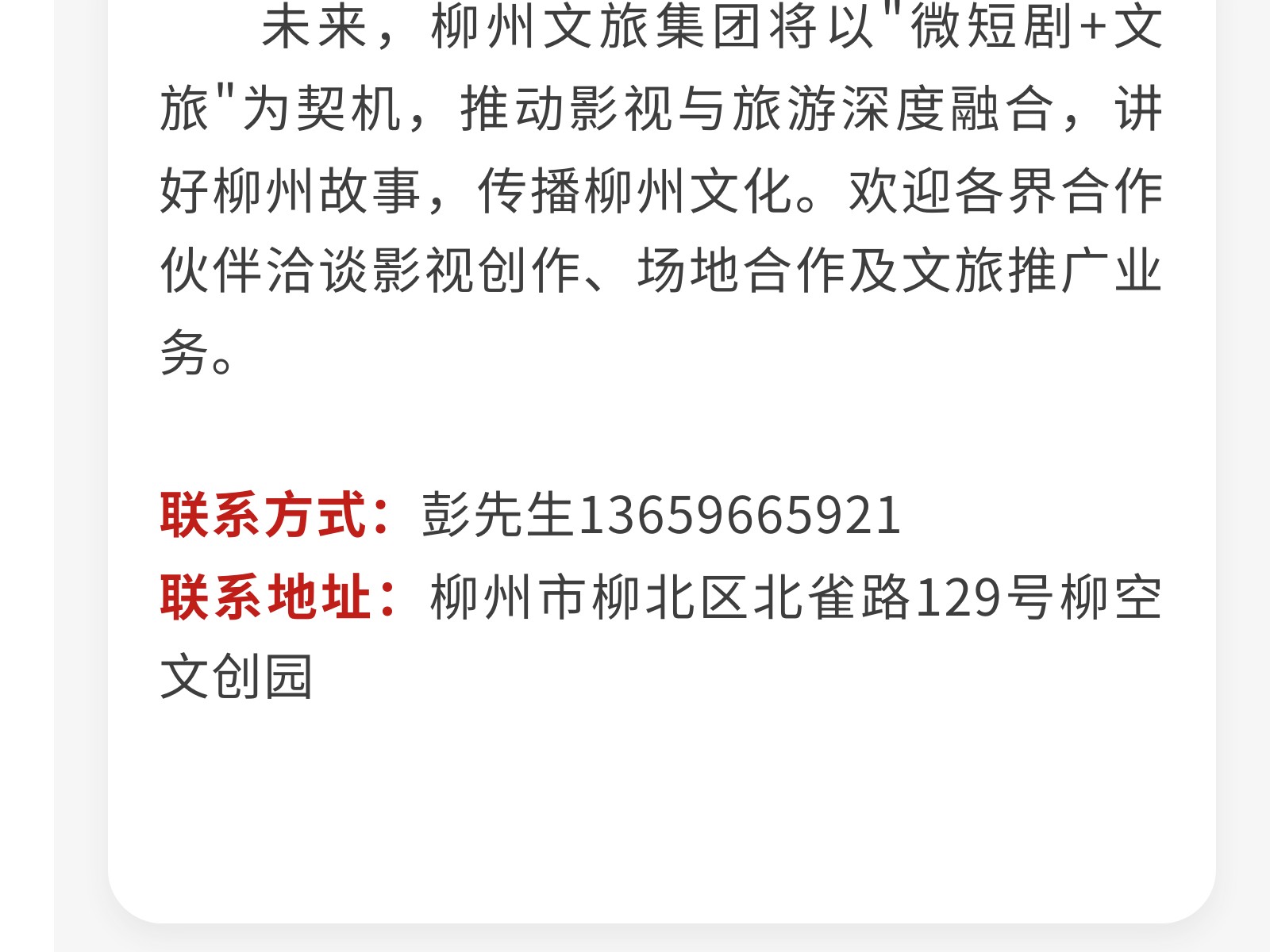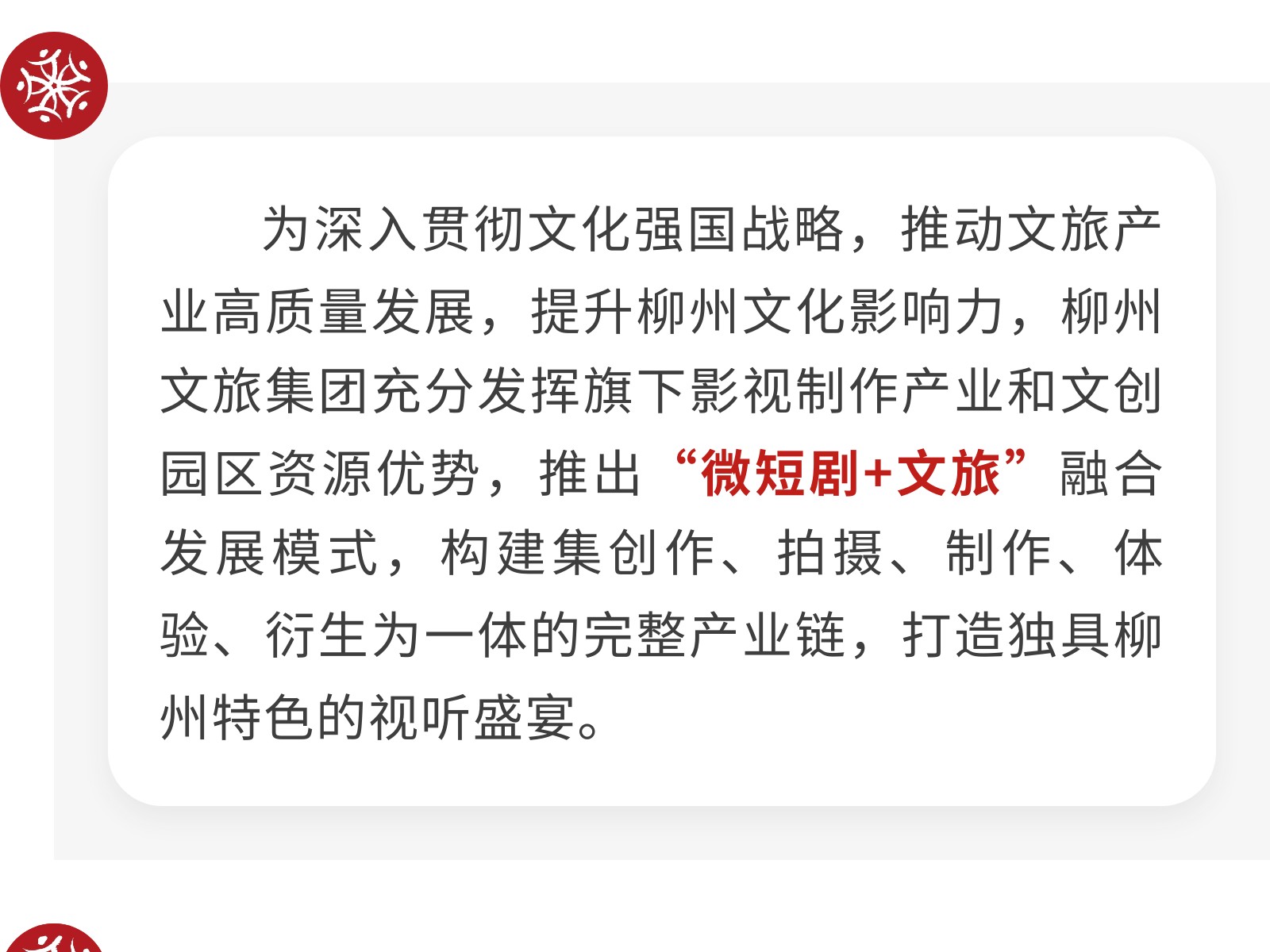 柳州文旅集團探索“微短劇+文旅”融合發(fā)展新模式 發(fā)布時間:2025年07月02日 10時來源:本站原創(chuàng)瀏覽:132 人次
