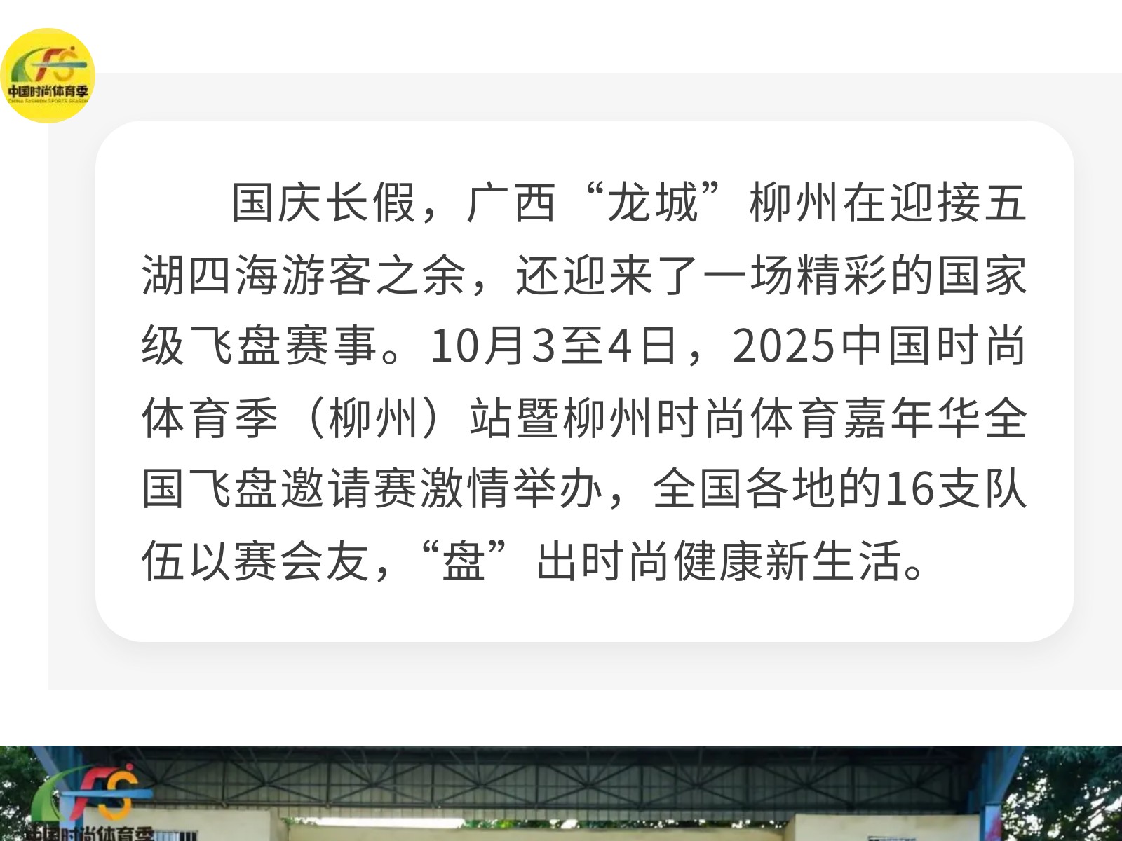“盤”出時尚健康新生活,廣西柳州承辦國家級飛盤賽 發(fā)布時間:2025年10月05日 17時來源:本站原創(chuàng)瀏覽:159 人次