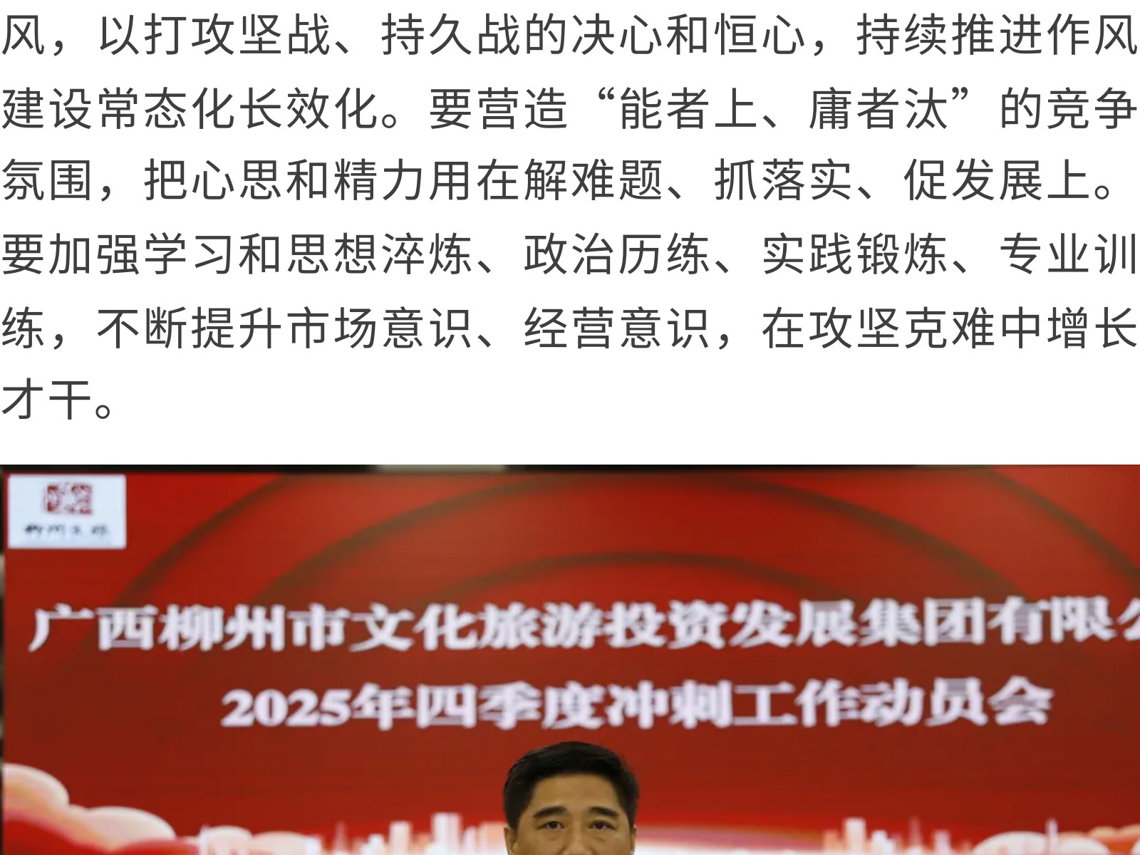 文旅集團(tuán)召開四季度沖刺工作動(dòng)員會(huì),決戰(zhàn)決勝全年目標(biāo)任務(wù) 發(fā)布時(shí)間:2025年10月17日 10時(shí)來源:本站原創(chuàng)瀏覽:57 人次