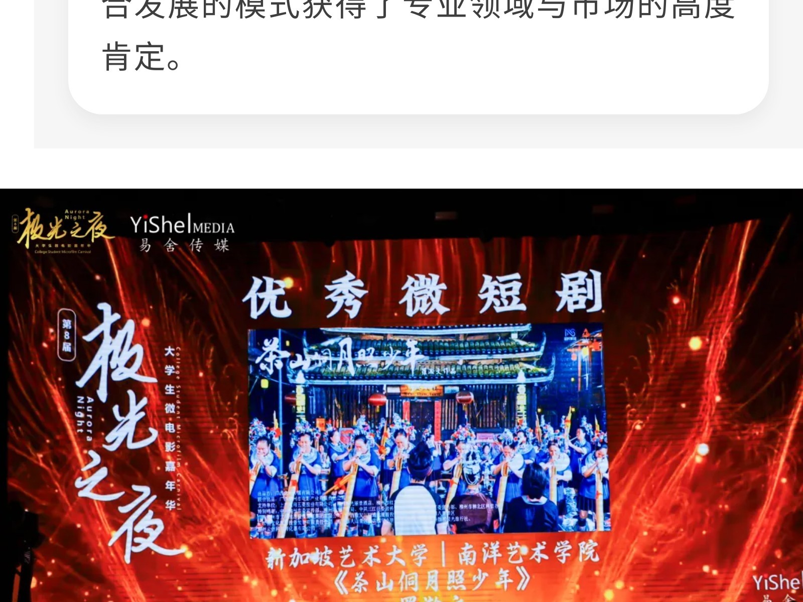 捷報(bào)!文旅集團(tuán)電影公司出品短劇榮膺“極光之夜”優(yōu)秀微短劇獎(jiǎng) 發(fā)布時(shí)間:2025年10月21日 10時(shí)來源:本站原創(chuàng)瀏覽:52 人次