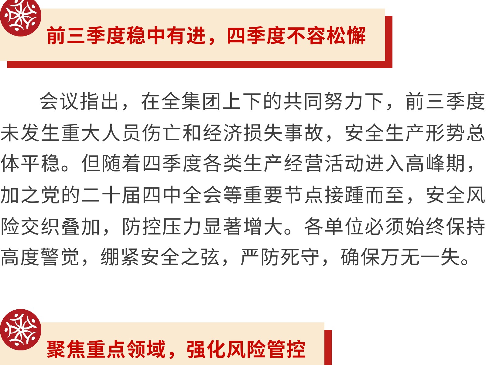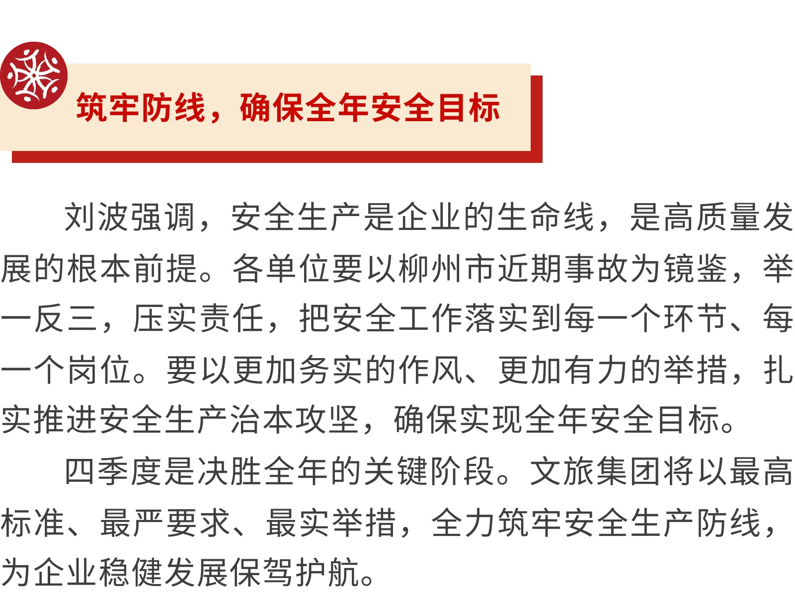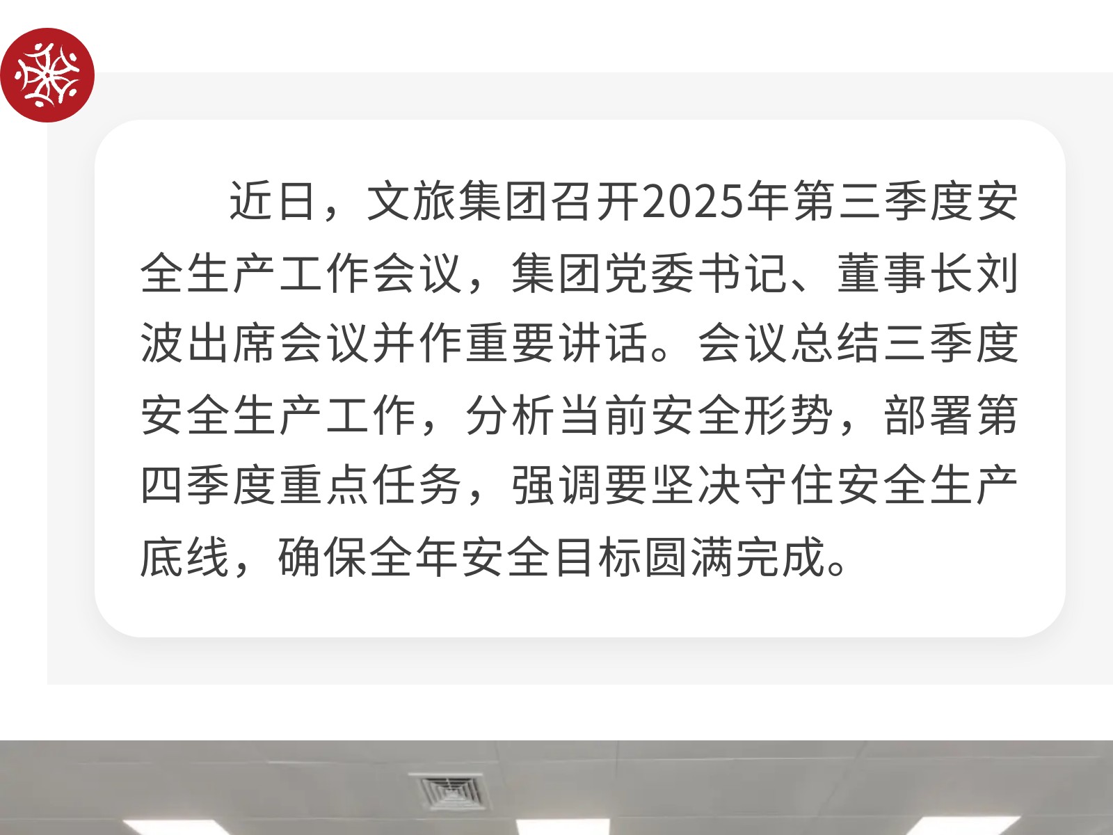 【壓實責任 筑牢防線】文旅集團全面部署2025年第四季度安全生產(chǎn)工作 發(fā)布時間:2025年10月24日 10時來源:本站原創(chuàng)瀏覽:29 人次