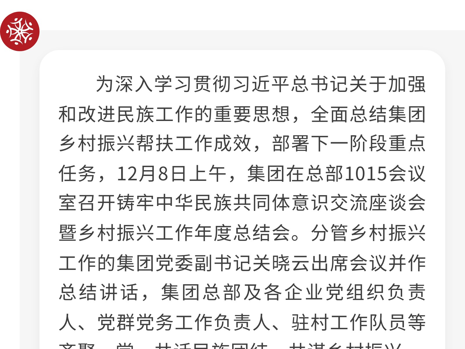 【凝心聚力共奮進(jìn) 民族團(tuán)結(jié)譜新篇】集團(tuán)召開鑄牢中華民族共同體意識(shí)交流座談會(huì)暨鄉(xiāng)村振興工作年度總結(jié)會(huì) 發(fā)布時(shí)間:2025年12月08日 10時(shí)來(lái)源:本站原創(chuàng)瀏覽:34 人次