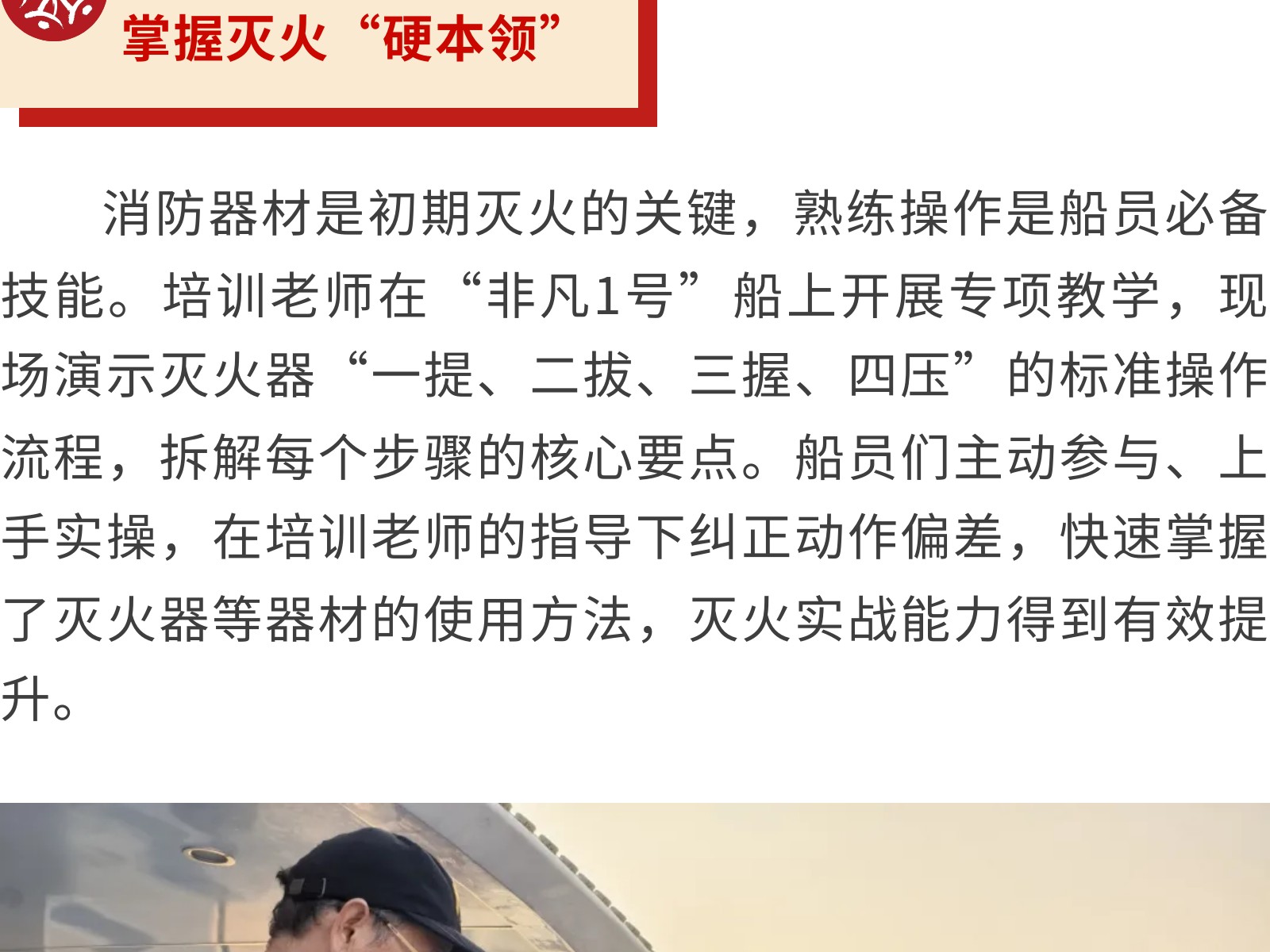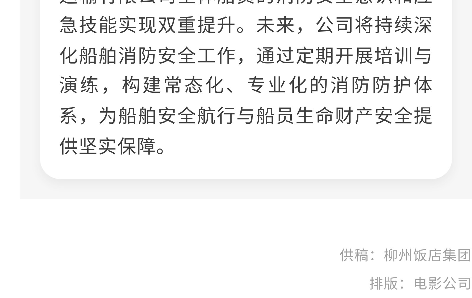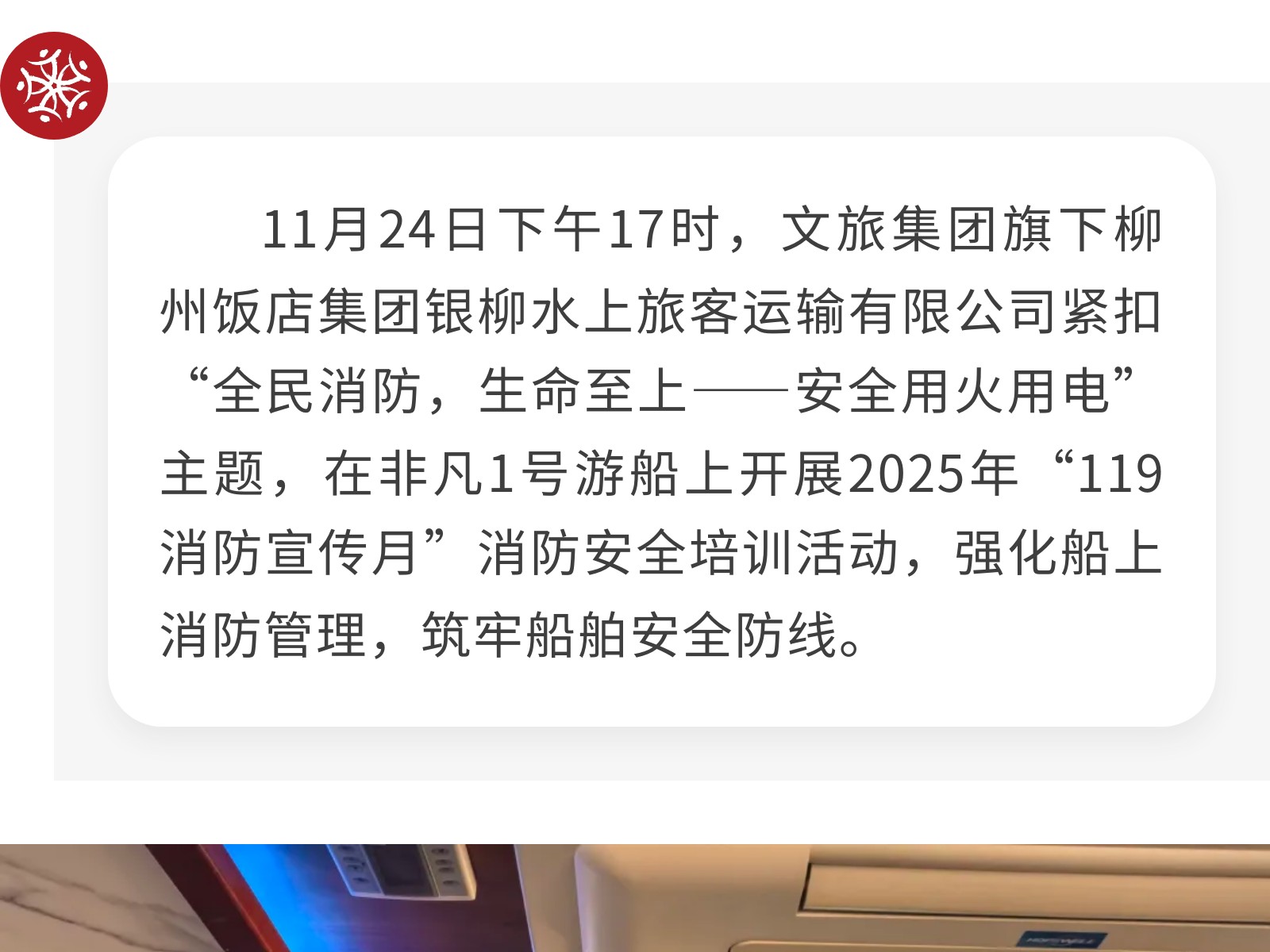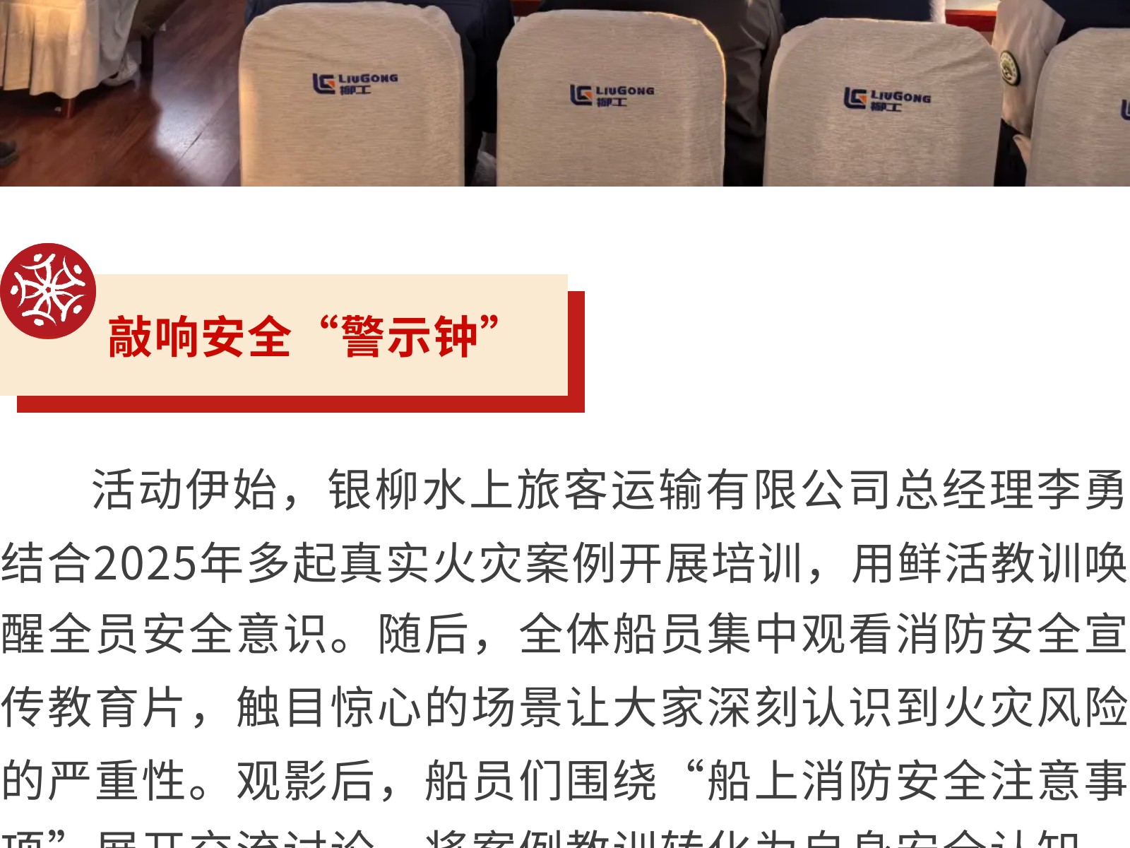 【強化船上消防,守護航行安全】銀柳水上旅客運輸有限公司開展消防安全培訓活動 發(fā)布時間:2025年12月09日 10時來源:本站原創(chuàng)瀏覽:35 人次