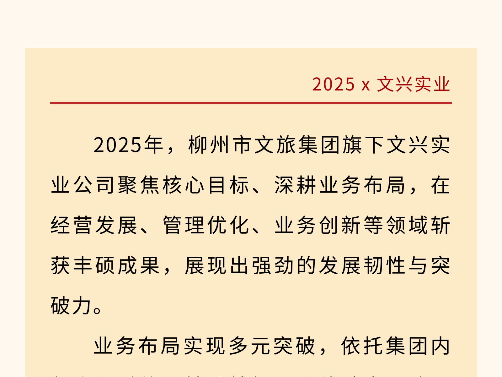 【文旅聚勢2025】多元?jiǎng)?chuàng)新拓新局,實(shí)干賦能高質(zhì)量發(fā)展——文興實(shí)業(yè)激活發(fā)展新動(dòng)能 發(fā)布時(shí)間:2025年12月24日 10時(shí)來源:本站原創(chuàng)瀏覽:51 人次