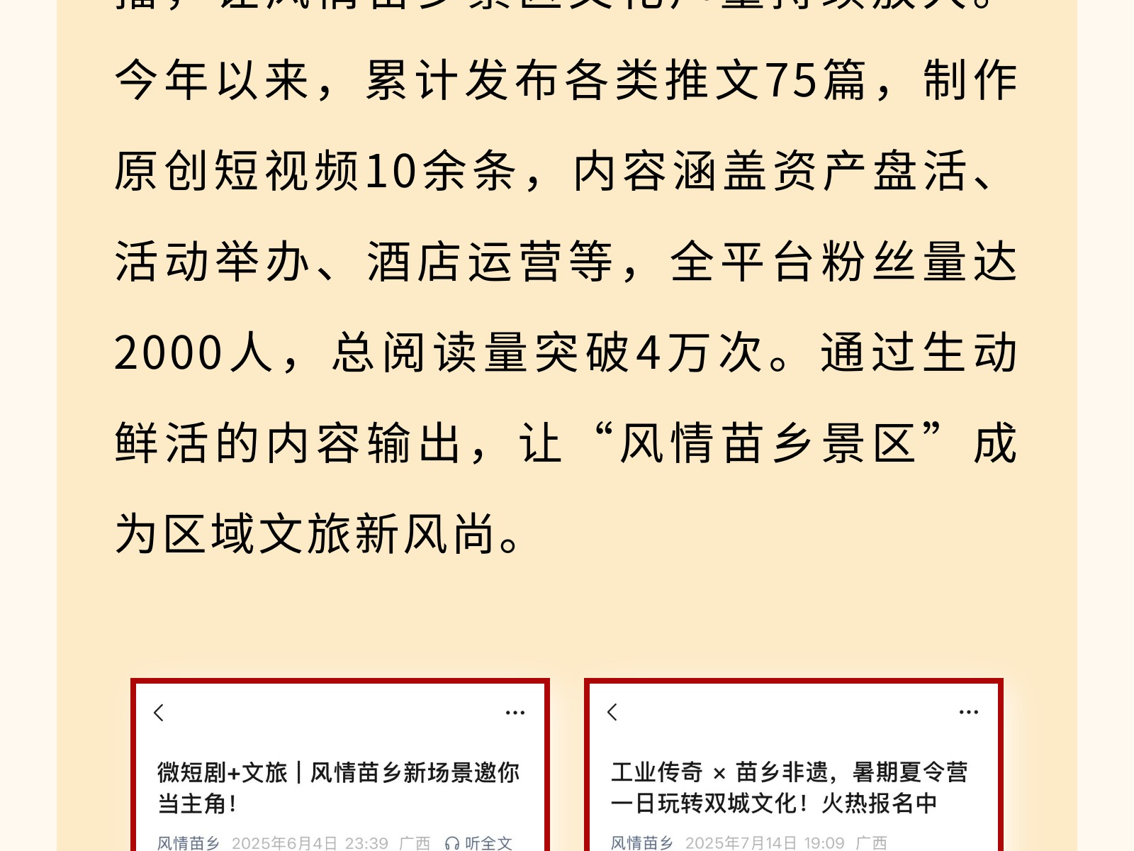 【文旅聚勢2025】苗寨歌聲里的2025:融水風情苗鄉(xiāng)景區(qū)年度記憶 發(fā)布時間:2026年01月05日 13時來源:本站原創(chuàng)瀏覽:33 人次
