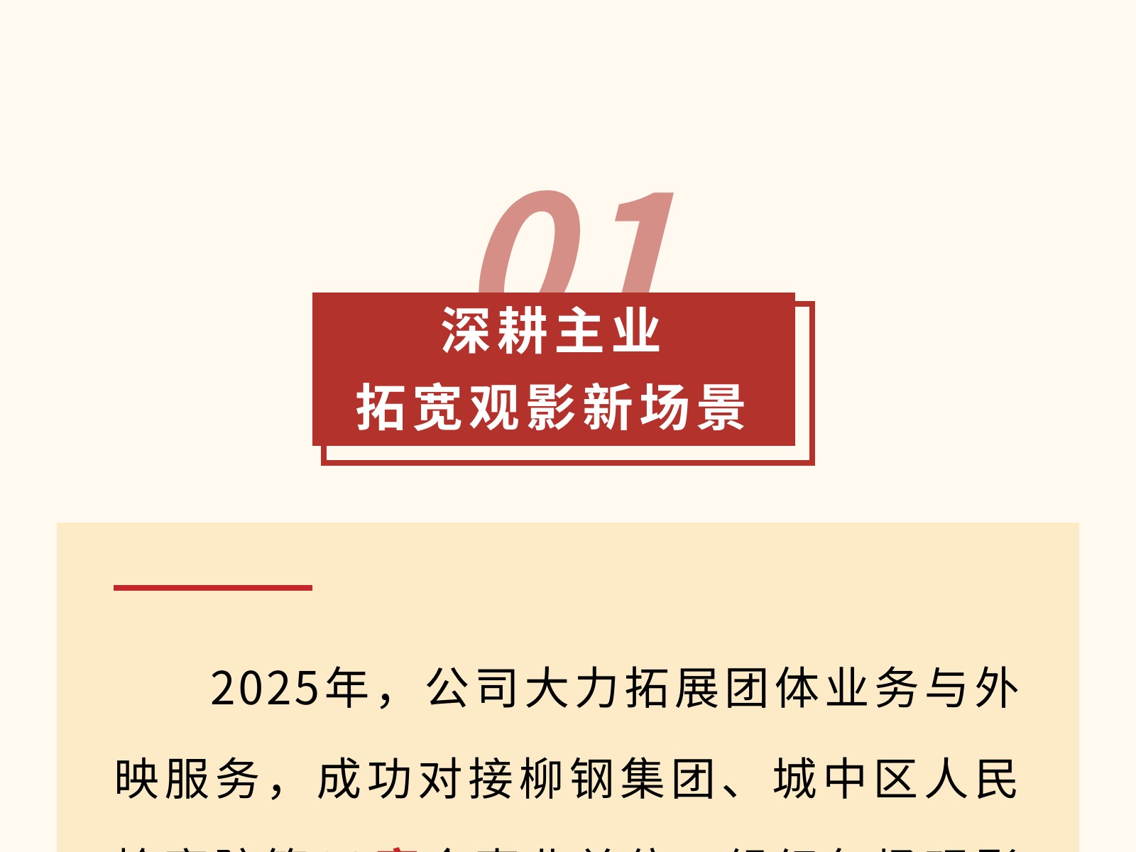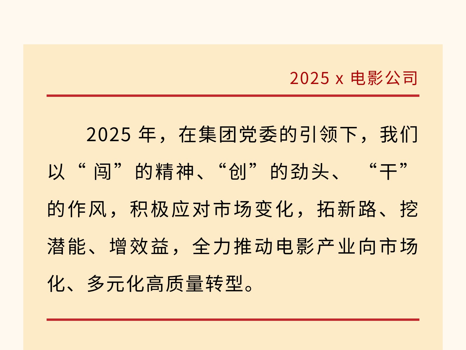【文旅聚勢2025】光影革新·創(chuàng)變未來——2025年電影公司年度工作亮點回顧 發(fā)布時間:2026年01月09日 14時來源:本站原創(chuàng)瀏覽:28 人次