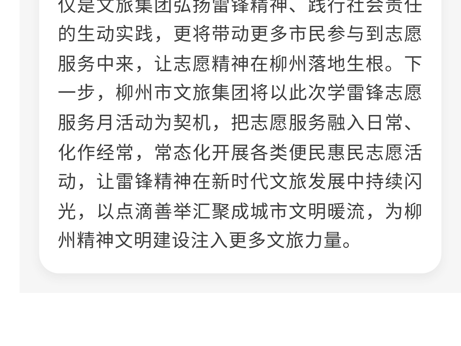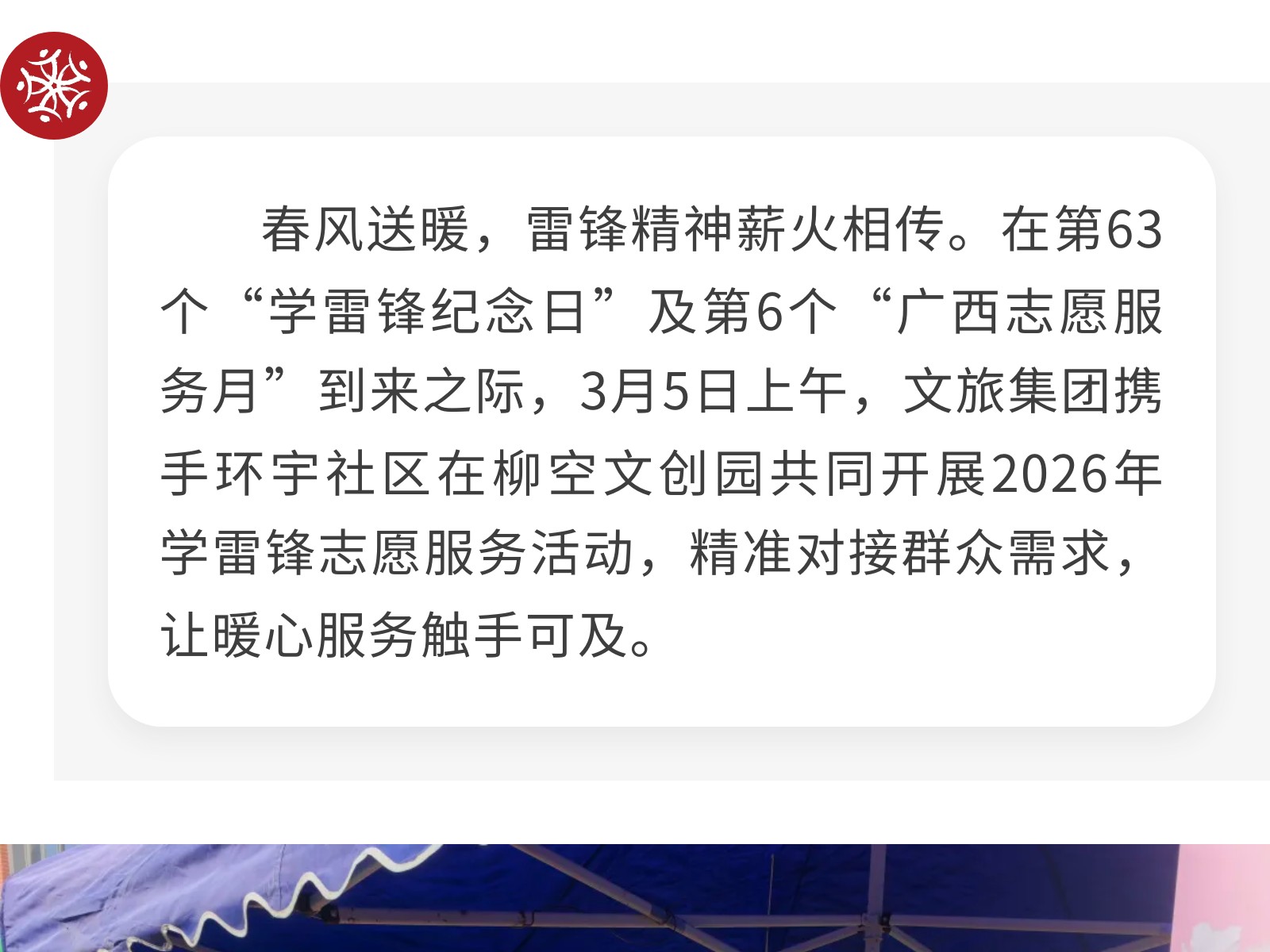 【學(xué)雷鋒 做志愿 共同奮進(jìn)十五五】文旅集團(tuán)開展2026年學(xué)雷鋒志愿服務(wù)活動(dòng) 發(fā)布時(shí)間:2026年03月06日 10時(shí)來源:本站原創(chuàng)瀏覽:72 人次