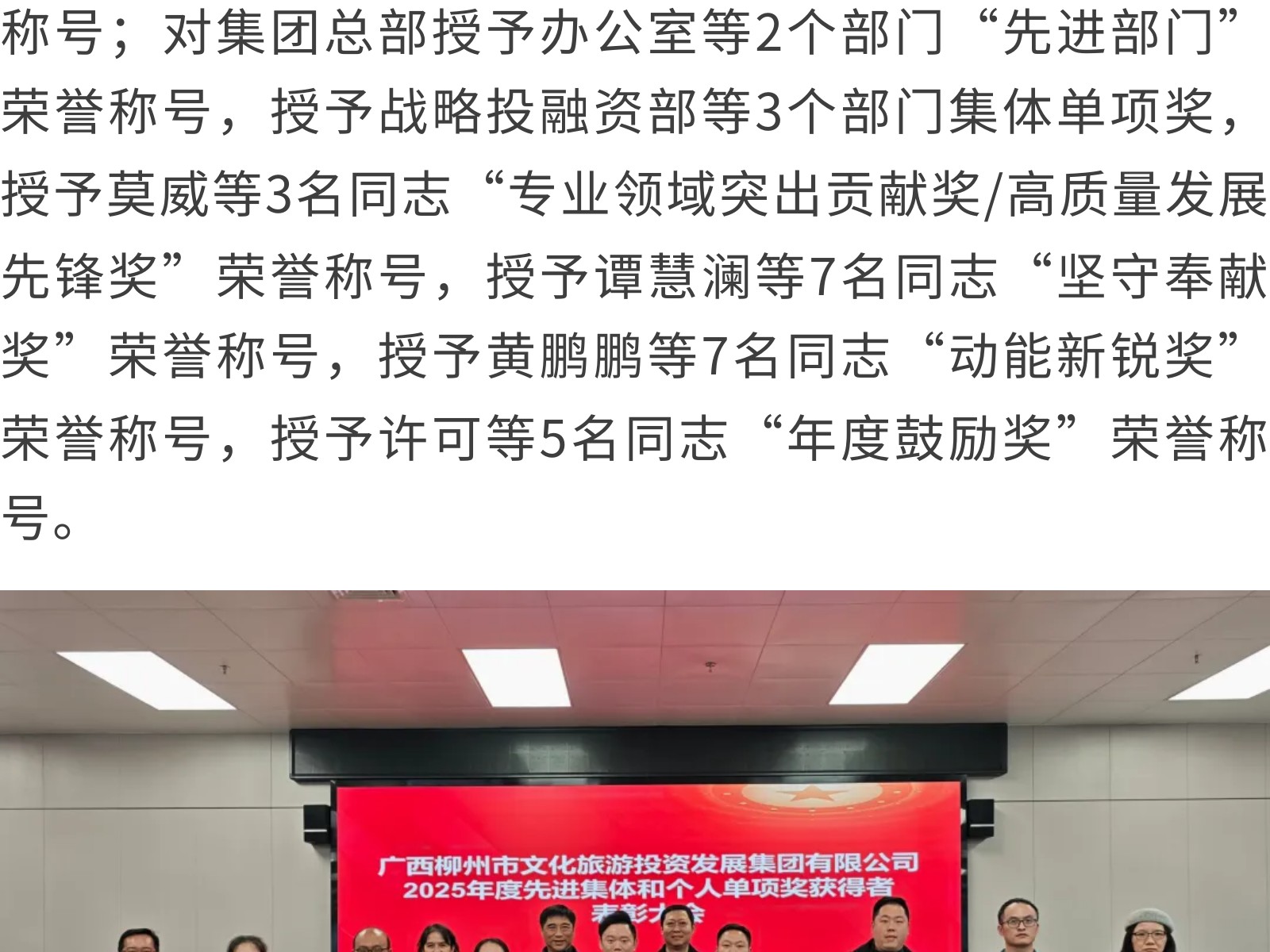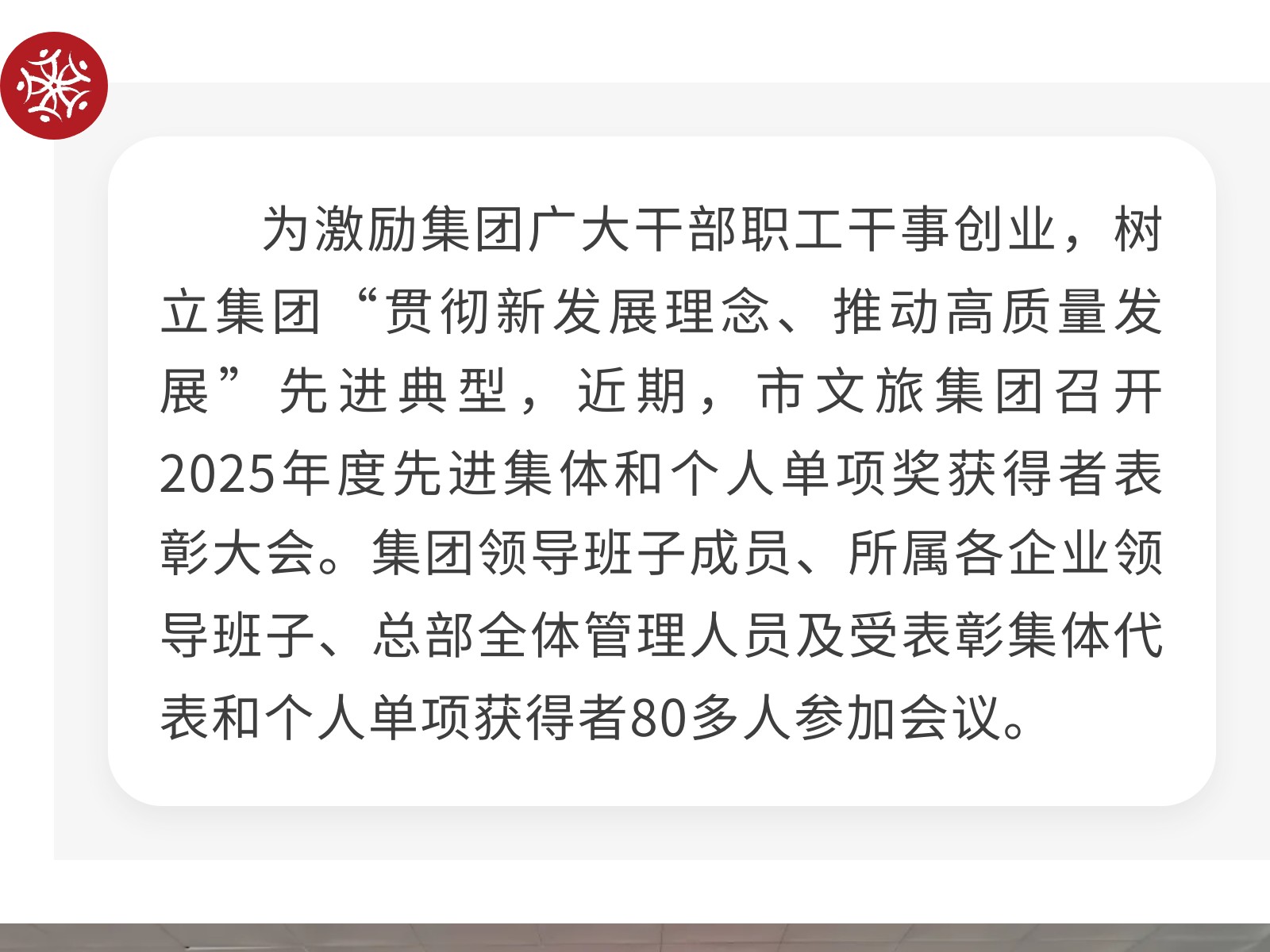 市文旅集團(tuán)召開2025年度先進(jìn)集體和個(gè)人單項(xiàng)獎(jiǎng)獲得者表彰大會(huì) 發(fā)布時(shí)間:2026年03月20日 16時(shí)來源:本站原創(chuàng)瀏覽:16 人次