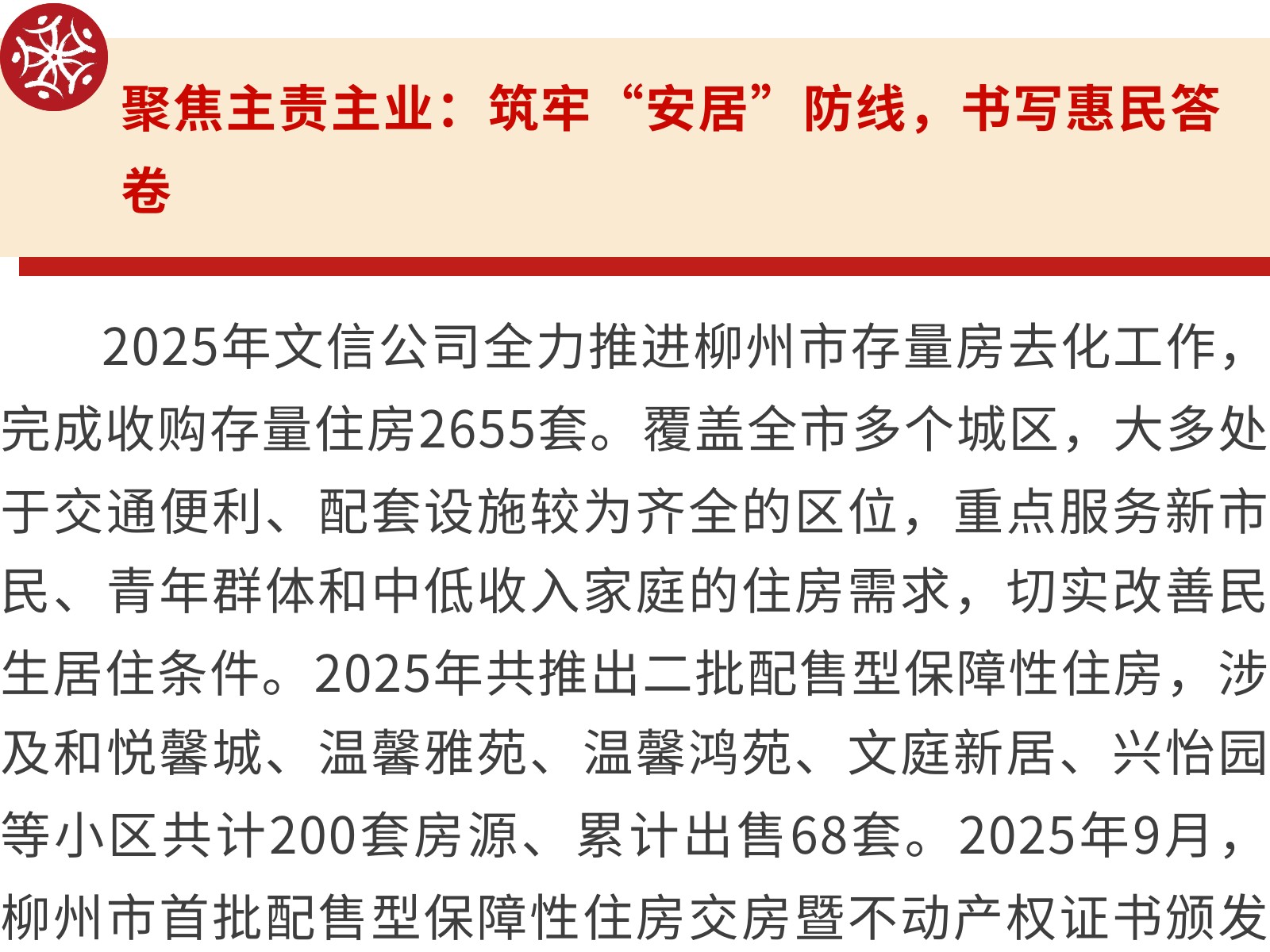 文信公司:聚焦主責(zé),激活存量價值——文信公司奮力書寫保障性住房新篇章 發(fā)布時間:2026年03月24日 10時來源:本站原創(chuàng)瀏覽:21 人次