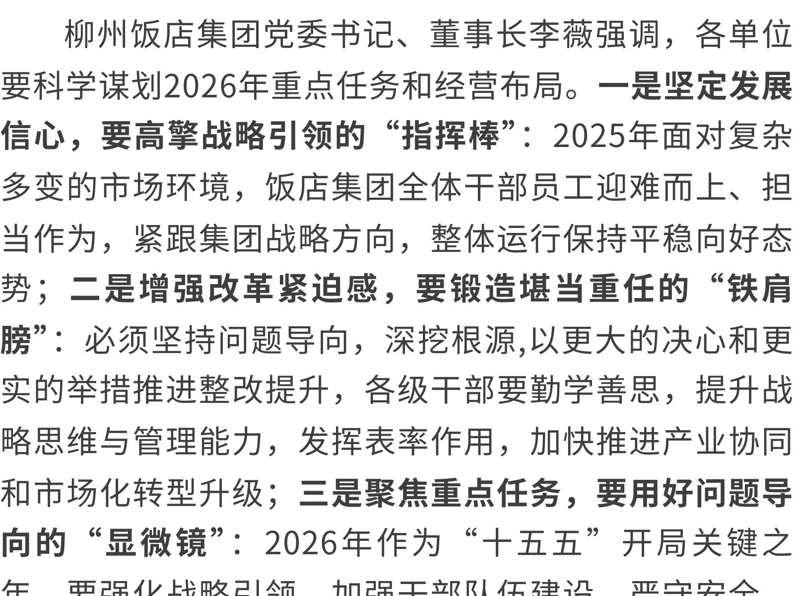 述職亮答卷,乘勢開新局——柳州飯店集團召開2025年經(jīng)營管理干部述職會 發(fā)布時間:2026年01月29日 10時來源:本站原創(chuàng)瀏覽:36 人次