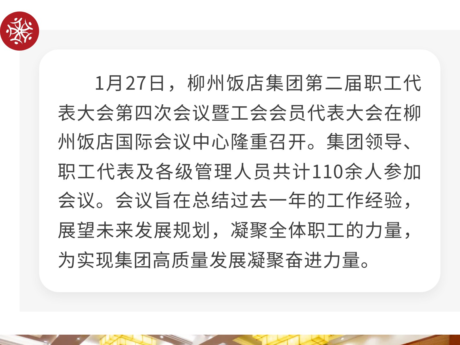 錨定新目標 凝心聚力啟新程——柳州飯店集團第二屆職工代表大會第四次會議暨工會會員代表大會勝利召開 發(fā)布時間:2026年01月30日 10時來源:本站原創(chuàng)瀏覽:39 人次